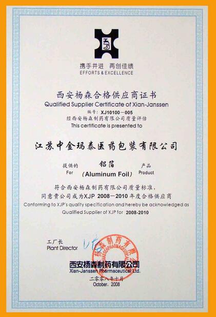 2008年10月23日至24日,2008年度西安楊森制藥有限公司供應商“企業質量管理及技術專題會議”在杭州召開,我公司生產制造部、品質管理部負責人出席本次會議。本次會議主題為“迎接挑戰共同發展”,會議主辦方組織開展了質量管理、環境需求以及供應商管理等相關內容的互動式培訓,并評出了公司2008-2010年合格供應商,我公司成為西安楊森鋁箔產品的唯一合格供應商。