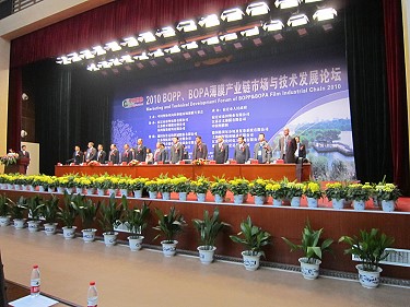 近日,由中國塑協BOPP薄膜專委會主辦,江蘇宿遷市政府承辦,宿遷市彩塑包裝、宿遷金田塑業、江蘇歐亞薄膜、江蘇首義薄膜等協辦的“2010年BOPP、BOPA薄膜產業鏈市場與技術發展論壇”在宿遷市會展中心舉辦。來自全國各地約400名代表參加此次論壇。我公司也派員參加了本次論壇會議。