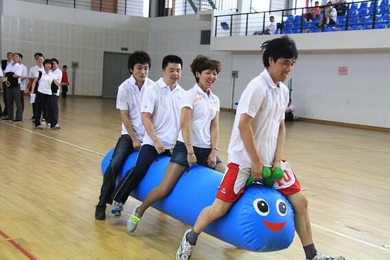 隨著比賽項目的逐一開展,整個運動場館內熱鬧非凡,成了一片歡樂的海洋。首場的消防器材使用接力賽將消防知識與運動項目有趣結合,寓教于樂兩相宜;集體跳繩考驗的則是團隊的配合與默契,選手們穿梭在不斷揮舞的長繩間,速度與效率的完美結合,令人嘆為觀止;毛毛蟲競速是今年新增趣味比賽項目的一個看點,比賽開始,兩隊選手各騎一只造型憨態可掬的充氣“毛毛蟲”,在保證整體步伐整齊有序的同時盡量快速移動。“毛毛蟲”搖頭擺尾、不斷“蠕動”的可愛模樣,以及前進途中各隊隊員們奮力沖向終點時的狀況不斷,引得場下觀眾笑聲連連......一個個充滿趣味的項目把緊張激烈的比賽變成了充滿笑聲、重在參與的“游戲”。在這個強調團隊協作,注重技巧與配合的賽場上,少了一份競爭,多了一份樂趣,大家在活動的參與中一起體驗運動的快樂。此次趣味運動會公司高層領導也到賽場觀看比賽,并與員工們一同參加了一些項目的比賽。