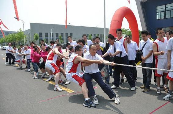 下午在室外舉行的拔河比賽將本次趣味運動會的氣氛推向了高潮,雖然艷陽高照,天氣炎熱,但絲毫沒有影響員工們對這次活動的熱情。只見賽場上人頭攢動,氣氛異常熱烈,伴隨著拉拉隊員震耳欲聾的加油聲,選手們使出渾身力氣,奉獻了一場場精彩的比賽。許多比賽隊伍實力相當,每次兩隊都要經過一段時間的僵持才會分出勝負。最終,由化工工廠、總務部、研究開發部組成的第四代表隊的大力士擊敗各路好手奪得拔河比賽的冠軍。