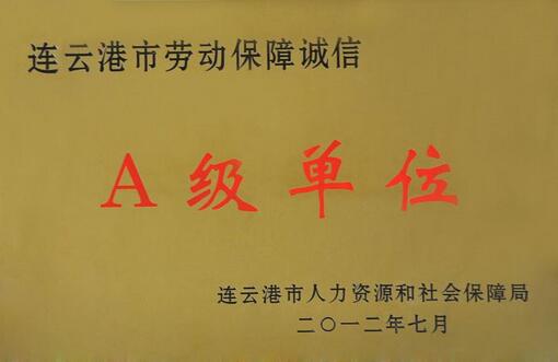 近日,江蘇中金瑪泰醫藥包裝有限公司被連云港市人力資源和社會保障局授予“2011年度勞動保障誠信A級單位”榮譽稱號,自2008年開展連云港市勞動保障誠信等級評價工作以來,我公司已連續多年獲得的此項榮譽。