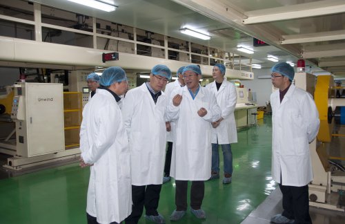 曹書記一行深入生產(chǎn)車間,參觀了我公司PTP新工廠項目。調(diào)研中,徐根華總經(jīng)理向曹書記一行介紹了企業(yè)經(jīng)營發(fā)展情況、近幾年設備投資計劃以及股東對中金瑪泰未來發(fā)展的支持與規(guī)劃等情況。在聽取了徐總的匯報之后,曹書記對中金瑪泰近年來的快速發(fā)展和取得的成績給予了充分的肯定和高度的評價。同時他也表示,開發(fā)區(qū)將會一如既往地支持服務好企業(yè)發(fā)展,希望中金瑪泰在加快自身發(fā)展的同時,也為開發(fā)區(qū)新一輪的經(jīng)濟增長做出新的貢獻。