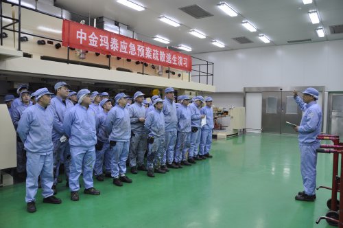 培訓課程結束后,公司安全科長楊正濤在演練場地就滅火器材及防護裝備的使用進行了現場的示范與講解,對初起火災撲救方法以及火災發生后如何報火警、如何安全疏散和自救逃生等安全常識進行了詳細的解說,參訓人員對手持式滅火器進行了實際操作演練。在隨后的各工廠應急演練疏散過程中,當消防警報突然響起,各區域安全負責人立即組織本區域人員井然有序地按照規定疏散路線,迅速撤離現場,到達指定地點集合,出色的完成了疏散逃生演練。